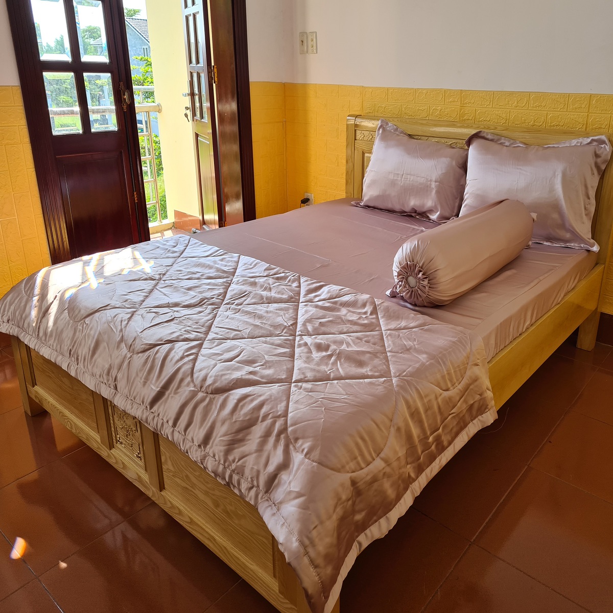 Bộ drap phi lụa cao cấp  Với màu sắc “ton sur ton”, bộ sản phẩm gồm  1 drap, 2 vỏ gối nằm sẽ làm cho căn phòng của bạn trở nên thật sinh động.