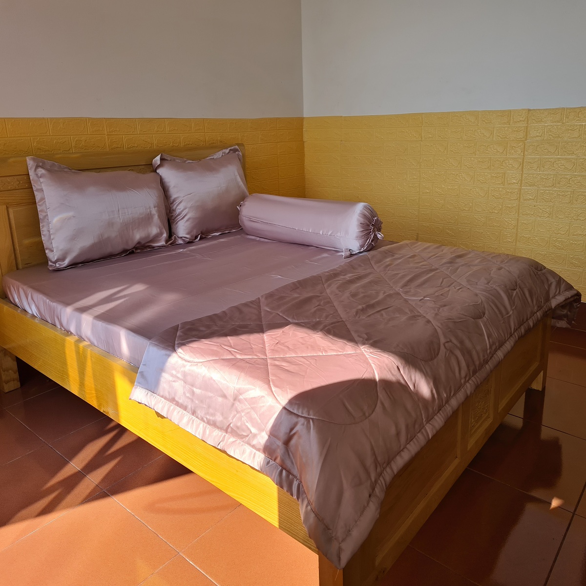Bộ drap phi lụa cao cấp  Với màu sắc “ton sur ton”, bộ sản phẩm gồm  1 drap, 2 vỏ gối nằm sẽ làm cho căn phòng của bạn trở nên thật sinh động.