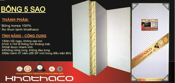 Vượt lên trên cả là Nệm Bông 5 sao Khathaco. Là một sản phẩm Nệm Gòn độc đáo trên thị trường nệm hiện nay.