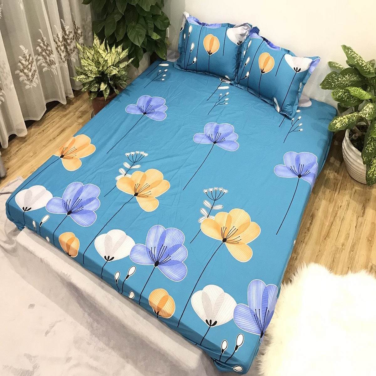 Bộ Drap lụa poly  được thiết kế  đáo độc theo phong cách Hàn Quốc, màu sắc hài hòa, tươi sáng mà không kém phần sang trọng sang trọng, phù hợp với mọi lứa tuổi và mọi không gian phòng ngủ.